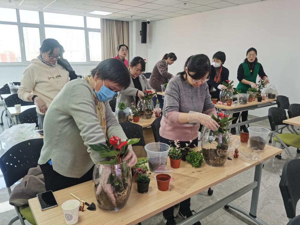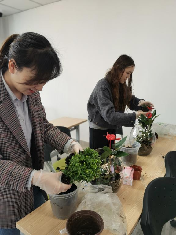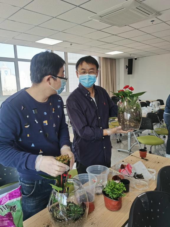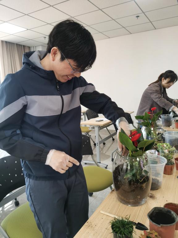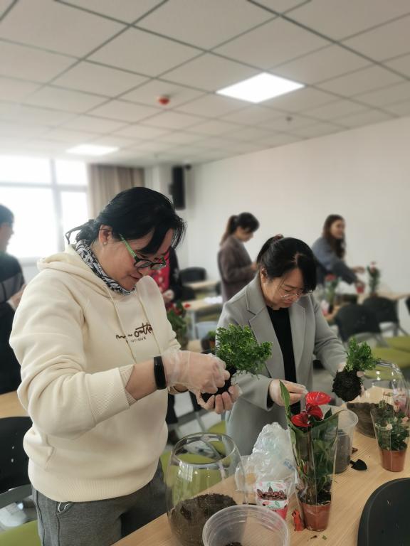 活动邀请资深花艺师为大家讲解花卉微景观知识及技法,并提供材料,现场指导老师们进行了微景观的搭建。在花艺师的指导下,老师们将花材修剪、整枝、排列、用心搭配,成功创作出属于自己的花卉微景观。