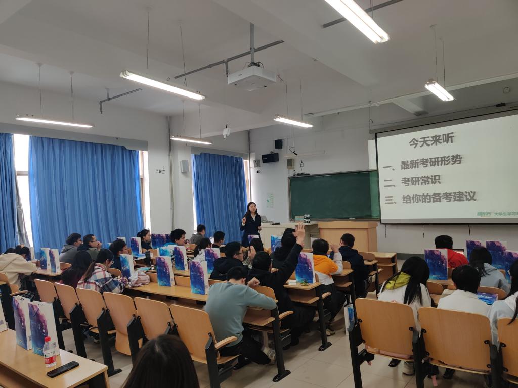 包雪龙校友结合自身工作经历,为母校学弟学妹们讲述从“我校人”向“新东方人”的转变,分享了求职过程的宝贵经验。考研形势宣讲阶段,邓凯伦老师结合近年研究生招考形势,从考研人数、考研难度、报考说明、备考规划等角度为同学们做了较为全面的分析,为备考同学们提供了复习指南。
