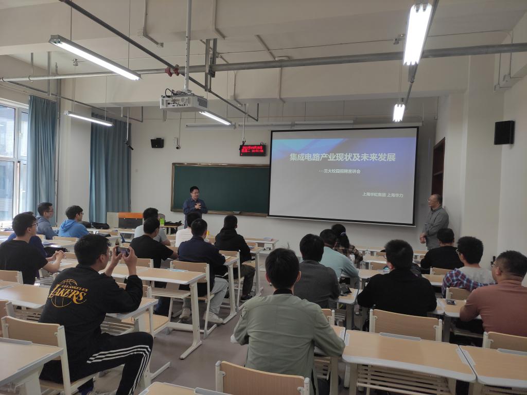 2021年9月28日下午14:00,上海华力集成电路制造有限公司在榆中校区第二教学楼B206教室举行304am永利集团官网专场招聘宣讲会,带领同学们深度解锁华力,带来最真实生动的岗位招聘解读。上海华力集团一行4人来到活动现场进行宣讲,永利集团304am登录本科生辅导员武刚及部分本科生参加活动。
