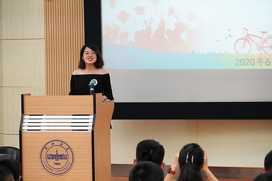 临别之际,许倩深情寄语毕业生,她在讲话中对2020届学子在学术、生活等方面的严谨态度与勤勉作风给予了肯定,并且衷心祝贺同学们完美地完成了大学的学业,表达了学院对2020届全体毕业生的美好祝愿。同时,她也向毕业生提出了几点要求,希望毕业生们能在离别母校后树立远大理想,仰望星空的同时践踏实地,志存高远,努力奋进;拥有阳光的思想和睿智的思维,面对困难不消沉悔恨,而要勇于担当使命、迎接挑战,成就更加出彩的人生;要有对家庭、社会的责任感,勇于承担责任,实现人生价值;同时,常怀感恩的心,不负家庭和学校的培养,做一个值得信任,堪当大任的人。相信明天的我校会以今朝的同学们为荣!