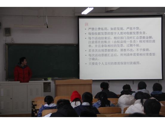 继而由权益部介绍挂账,收据,发票的具体要求与注意事项,详细介绍了策划书的完成方式与模板讲解,并以“宿舍文化节策划书”为例展开具体说明。