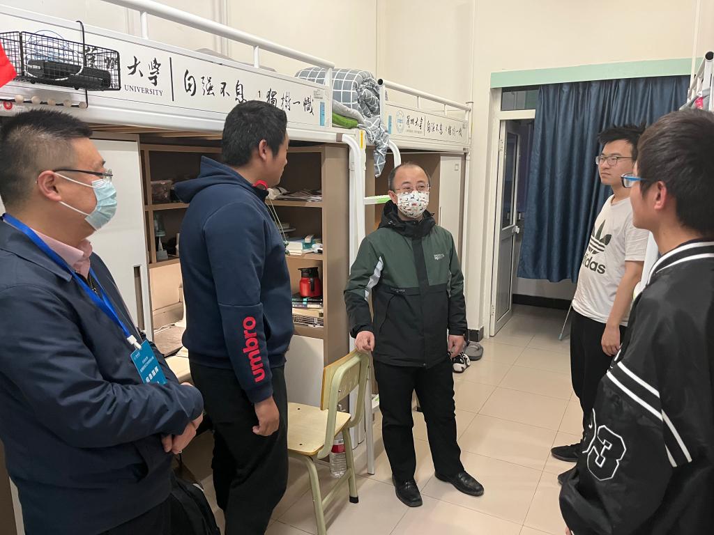 为贯彻落实三走进工作原则,进一步了解在校本科生的学习生活状况,鼓励同学们克服疫情影响,保持良好状态,3月31日晚,学院党委书记冯济骞,学生处学生事务管理办公室负责人李鹏程,学院专兼职辅导员走访2021级本科生宿舍,看望慰问榆中校区部分本科生。